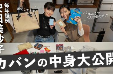 【安田美沙子のカバンの中身】今回も1年ぶりにカバンをチェック!1年前より○○が進化してました。