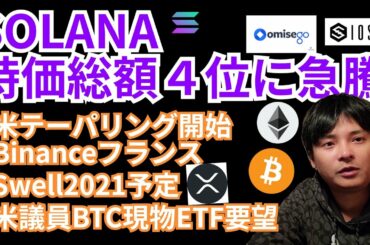 仮想通貨 SOLANA 時価総額4位に急騰🚀【ニュース + BTC ETH XRP IOST OMG SOL チャート分析】