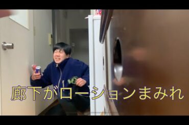 【ドッキリ】廊下をローションまみれにして友達を出迎えるドッキリ