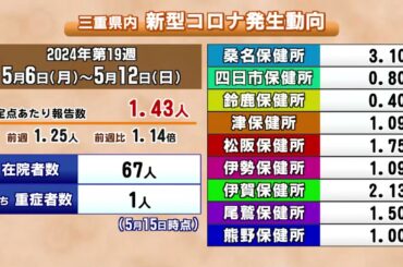 三重の新型コロナ感染者数は前週と同じで重症者なし