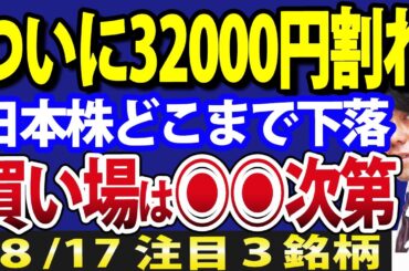 【重要】日経平均3万2000円割れ!日本株どこまで下がる、買い場は●●次第