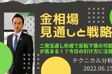 【金価格】金相場は今後どうなる?二発玉返し形成で反転下落の可能性が高まる!?今日の引け方に注目! テクニカル分析でみた見通しと戦略 6月15日(水)