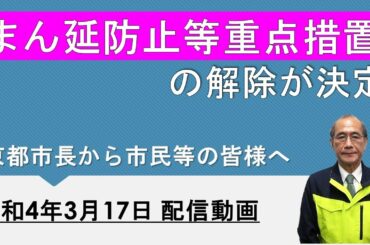 【京都市公式】京都市長から市民等の皆様へ~まん延防止等重点措置の解除が決定~(令和4年3月17日配信動画)
