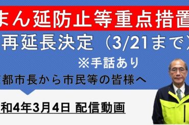 【京都市公式】京都市長から市民等の皆様へ~まん延防止等重点措置の再延長決定~(令和4年3月4日配信動画)※手話あり