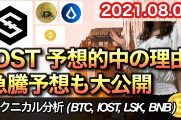 仮想通貨 テクニカル分析【8/3 今後の予想(BTC、IOST、LSK、BNB)】