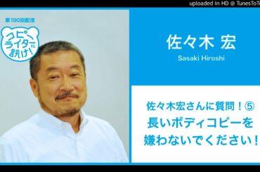 【第190回】佐々木宏さんに質問!⑤長いボディーコピーを嫌わないでください!