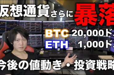 仮想通貨さらに暴落!ビットコイン、イーサリアム、他どこまで下がる?買い増しは?今後の値動き、投資戦略を解説します。