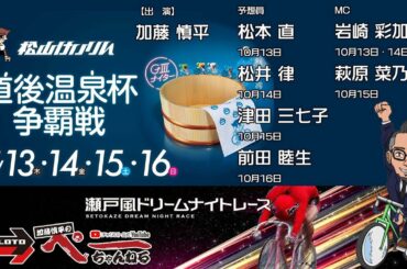 #Girls 2022.10.13 チャリロト公式Youtube 加藤慎平の「ぺーちゃんねる」Vol.80 瀬戸風ドリームナイトレース 道後温泉杯争覇戦 [GⅢ] 10/13(木)【初 日】#松山競輪 #松山競輪ライブ…