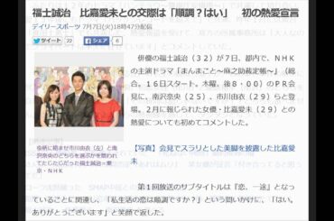 福士誠治 比嘉愛未との交際は「順調?はい」 初の熱愛宣言