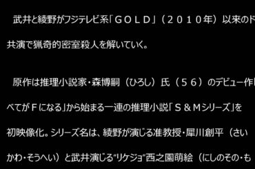 武井咲、綾野剛W主演 小説「すべてがFになる」が10月より連続ドラマスタート!