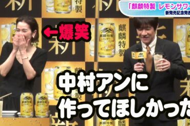 内村光良&中村アン、あ〜っと声が自然に出てCMと同じ表情に/「麒麟特製 レモンサワー」新発売記念発表会