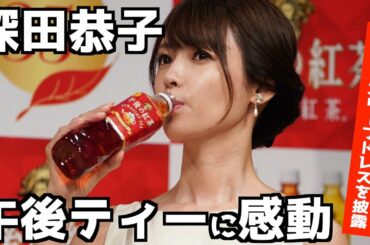 【深田恭子】純白ノースリーブドレス姿で登場した深田恭子が新「午後ティー」を〝格付け〟