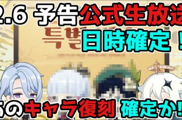 【原神】2.6アプデ「予告公式生放送」日時確定!キャラ復刻も確定か!?【げんしん】