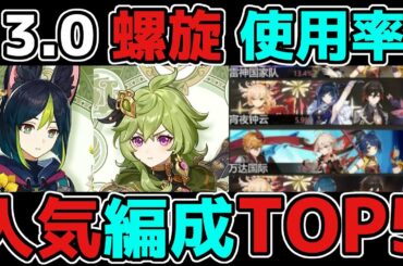 【原神】螺旋使用率3.0版「TOP5」本国の人気編成!草元素で環境に変化は!?げんしん,ティナリ,コレイ,スメール
