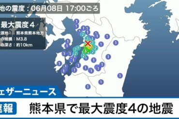 【地震情報】熊本県で震度4の地震 津波の心配なし