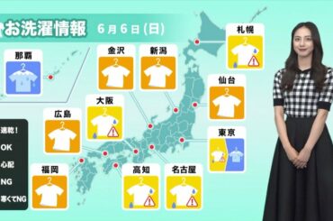 明日6日(土)の洗濯天気 日本海側は青空広がり外干し可