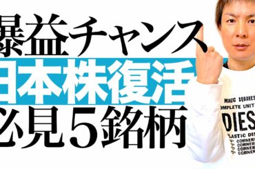 INVESTMENT 2022.05.24 【今上がる株 5選】日本株に強力な追い風!厳選5銘柄の爆上げ予告&最適な買い場と根拠を分かりやすく解説します|右肩あがりに上昇する注目株の株価チャートで今後の株価予想と最適な売買タイミングも徹底図解…