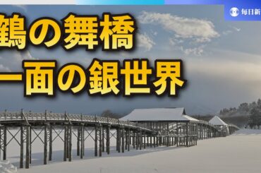 日本一長い「鶴の舞橋」銀世界に 吉永小百合さん出演CMで話題