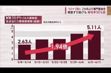 コロナ2倍に 2カ月ぶり専門家会合 陽性率50%超 検査すり抜けも (2023年6月16日)