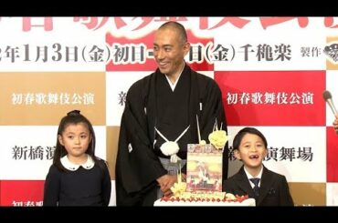 市川海老蔵、堀越勸玄のお茶目さにお手上げ? 大人びた市川ぼたんと共に親子で新橋演舞場1月公演『初春海老蔵歌舞伎』記者懇親会