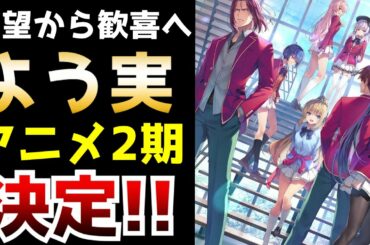 ANIME 2022.02.21 【超絶朗報】原作改変から続編のアニメ化は無理だと絶絶望視されていたあの作品『ようこそ実力至上主義の教室へ』が5年越しとなる待望のアニメ第2期制作決定!!!【ラノベ】【続編アニメ化】【よう実】…