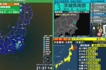 【地震】茨城県南部 震度3 M4.0 (2022/1/5 21:34ごろ 切り抜きアーカイブ)
