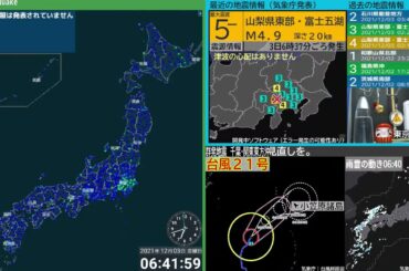 【強い地震】山梨県東部・富士五湖 震度5弱 M4.9 (2021/12/3 6:37ごろ 切り抜きアーカイブ)