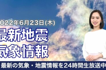 【LIVE】昼の最新気象ニュース・地震情報 2022年6月23日(木)/西日本や東海は暑さ厳しい〈ウェザーニュースLiVE〉
