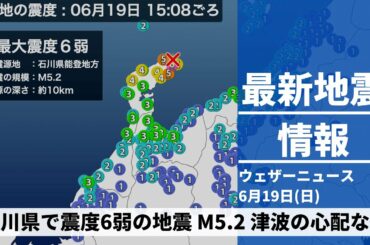 【LIVE】夜の最新気象ニュース・地震情報 2022年6月19→20日(月)/石川県で震度6弱の地震〈ウェザーニュースLiVE〉
