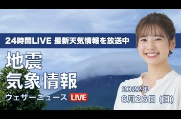 【LIVE】熊本で震度5弱 最新地震情報 2022年6月26日(日) /関東など 夜も熱中症に警戒〈ウェザーニュースLiVE〉