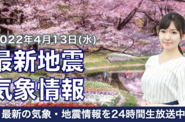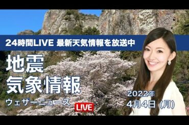 NEWS 2022.04.04 【LIVE】関東で地震発生 最大震度3 震源は千葉県北西部 M4.7/夜の最新気象ニュース・地震情報 2022年4月4日(月)/関東は夜まで桜散らしの雨続く〈ウェザーニュースLiVE〉…