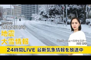 【LIVE】朝の最新気象ニュース・地震情報 2022年2月22日(火)/局地的な大雪に警戒〈ウェザーニュースLiVE〉