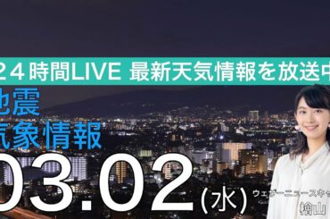 【LIVE】夜の最新気象ニュース・地震情報 2022年3月2日(水)/関東より西は花粉と寒暖差に注意〈ウェザーニュースLiVE〉