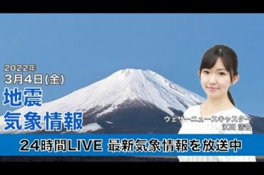 【LIVE】昼の最新気象ニュース・地震情報 2022年3月4日(金)/全国的に穏やかな空〈ウェザーニュースLiVE〉