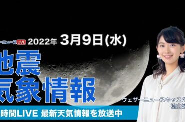 【LIVE】夜の最新気象ニュース・地震情報 2022年3月9日(水)/広範囲で穏やかな晴天〈ウェザーニュースLiVE〉