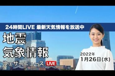 【LIVE】朝の最新気象ニュース・地震情報 2022年1月26日(水)/太平洋側は晴れて寒さ和らぐ〈ウェザーニュースLiVE〉