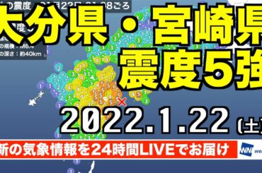 【LIVE】大分県・宮崎県で震度5強の地震発生 2022年1月22日(土)/〈ウェザーニュースLiVE〉
