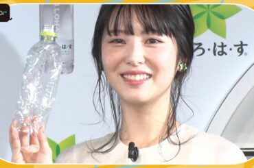 浜辺美波、ペットボトルたたんでキュートなドヤ顔! 「い・ろ・は・す 天然水」新ボトル発表会に登場