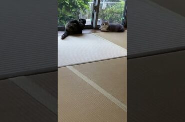 スコティッシュのまるちゃんとエキゾチックのこてつくん 距離が縮まったり、そうでなかったり…。第3日目。