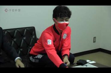 宇山賢選手が京都新聞社を訪問(2021年8月27日、京都市中京区)