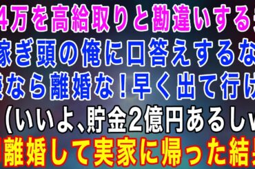 DRAMA 2023.07.15 【スカッとする話】手取り14万を高給取りと勘違いする夫「稼ぎ頭の俺に口答えするな!嫌なら離婚な!」私(いいよ、貯金2億円あるしw)→即離婚して実家に帰った結果www【修羅場】【総集編】…