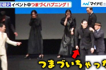 岡田健史、看板につまづくハプニング発生!照れながらも爽やかに退場 映画『死刑にいたる病』完成披露試写会