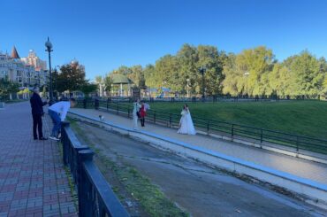 結婚式を終わった後、川のほとりでフォトタイムです。綺麗な景色です。
