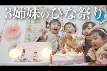 【初節句】年子3姉妹でひな祭りパーティしたら可愛過ぎた!食べることにしか興味がない娘たちw