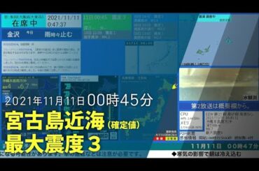【最大震度3】2021年11月11日 00時45分頃発生 宮古島近海 深さ115km M6.5【緊急地震速報(予報)】
