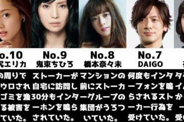 ストーカー被害を受けた芸能人【ランキング】【比較】