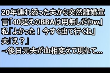 In NEWS 【感動する話】20年連れ添った夫から突然離婚宣言「40超えのBBAは用無しだわw」私「よかった!今すぐ出て行くね」夫「え?」→後日元夫が血相変えて現れて…【修羅場】 2023.02.01 …