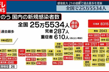 【新型コロナ】全国25万5534人の新規感染者 過去最多を更新 死者は287人で過去3番目 18日