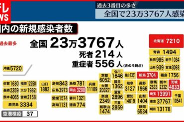【新型コロナ】全国23万3767人の新規感染者 過去3番目 死者214人 5日