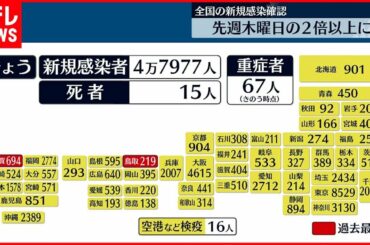 【新型コロナ】全国4万7977人感染確認 鳥取・佐賀で過去最多更新